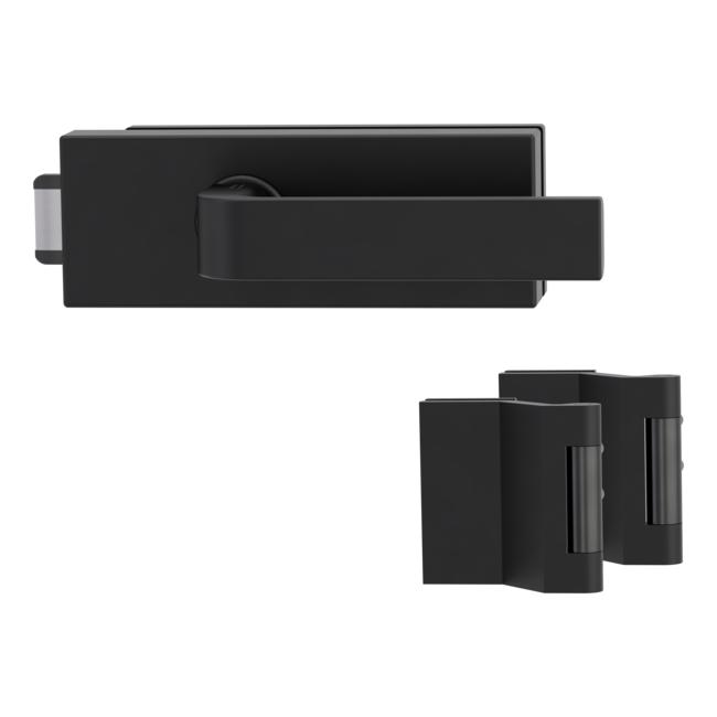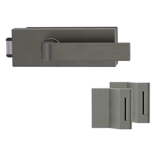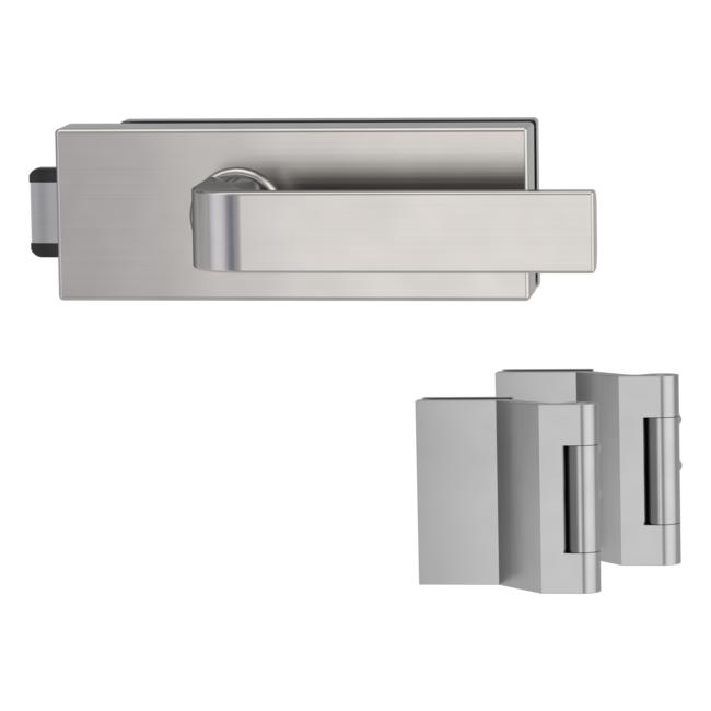 Комплектът включва ръкохватка Graph и брава с панти от 3-части с максимално натоварване до 60 кг. и е подходящ за стъкло с дебелина 8 мм.