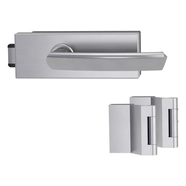 Комплектът включва ръкохватка Jette Crysta и брава с панти от 3-части с максимално натоварване до 60 кг. и е подходящ за стъкло с дебелина 8 мм.