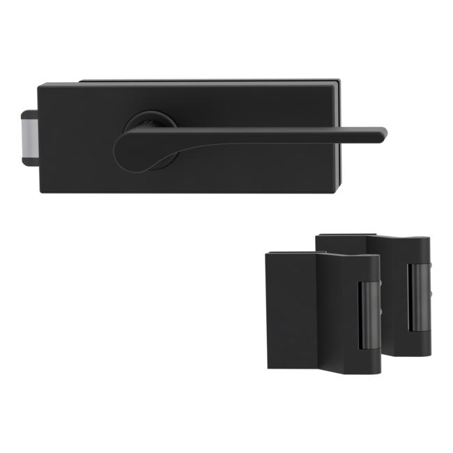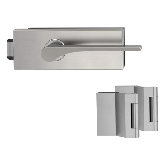 Комплектът включва ръкохватка Leaf Light и брава с панти от 3-части с максимално натоварване до 60 кг. и е подходящ за стъкло с дебелина 8 мм.