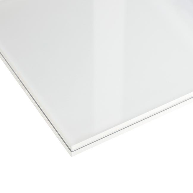 Стъклена врата изработена от 8.8мм закалено стъкло. Закаляването е процес, при който стъклото е подложено на специална обработка, която му осигурява повишена здравина при удар и резки промени на температурите. При счупване, то се пръска на малки парченца, които остават залепени за тънкия филм по средата за да се избегне нараняване.